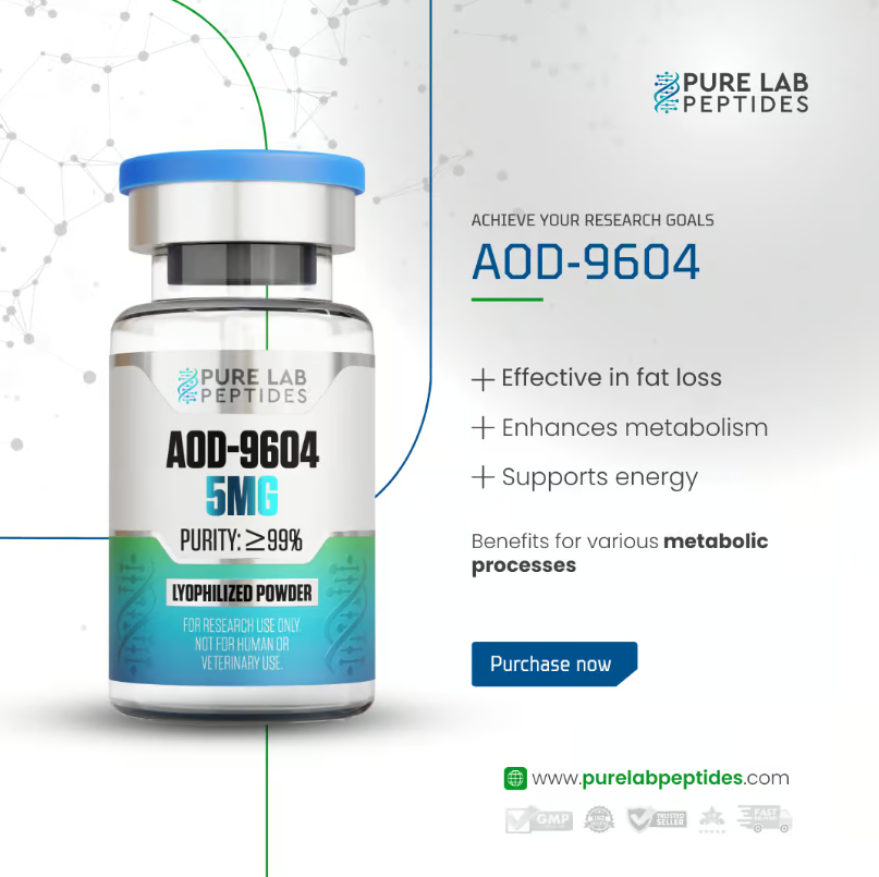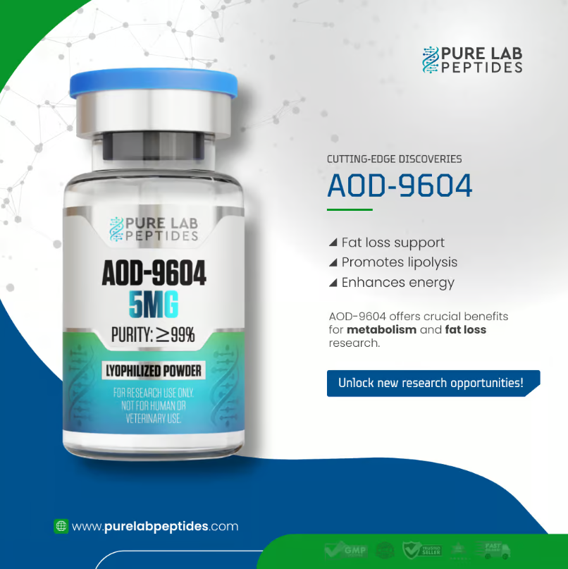 AOD-9604 is a modified form fragment of the human growth hormone (GH) which encompasses the fat reducing activity of GH without its muscle-building effects, making it extremely sought after for research aimed at understanding fat metabolism and developing anti-obesity treatments.