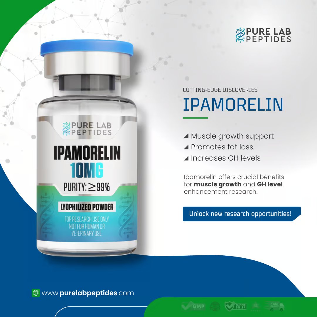 Ipamorelin 10mg is a potent research peptide classified as a selective growth hormone secretagogue. It is widely studied for its ability to stimulate growth hormone release while minimizing side effects such as increased cortisol or prolactin levels. Our Ipamorelin is synthesized with the highest standards of purity and stability, making it an ideal choice for advanced scientific research.