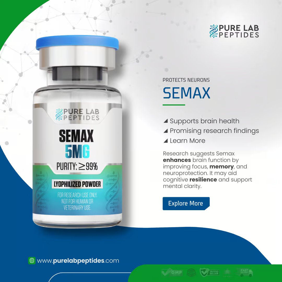Semax 5mg is a synthetic peptide extensively studied for its nootropic and neuroprotective properties. Known for its role in enhancing cognitive function, memory, and neuroplasticity, Semax is a valuable research compound in the fields of neuroscience and mental health. Our Semax is synthesized using high-quality materials, ensuring optimal purity and reliability for advanced research applications.